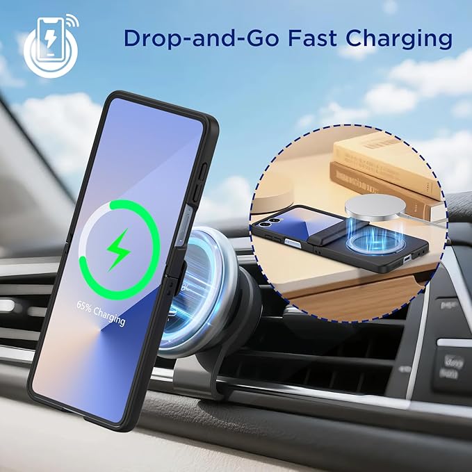 - [Slim Z Flip 7 Case] - Ultra-thin case ONLY compatible with Samsung Galaxy Z Flip 7, lightweight as air. The hard PC matte back completely covers the flip7, which is durable and has strong heat dissipation, not bulky at all. Soft TPU hinge protection, skin-friendly and smooth. (Warm tips: All wireless charging devices will generate a certain amount of heat. 1.Recommended to charge in a well ventilated area. 2.Use certified wireless charging.3.Avoid overcharging/charging while using.)