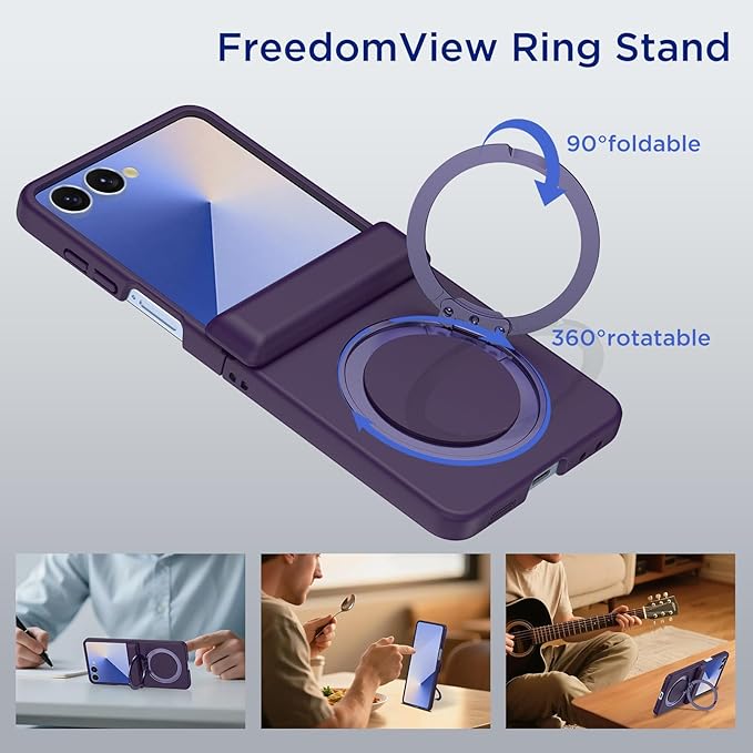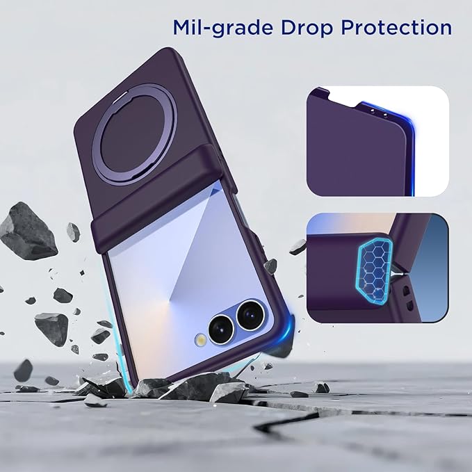 for Samsung Galaxy Z Flip 7 Case, Compatible with Magsafe, [Rugged Hinge Protection] [360° Kickstand], Mil-Grade Shockproof Slim Phone Case for Galaxy Z Flip 7 2025 (Darkpurple)