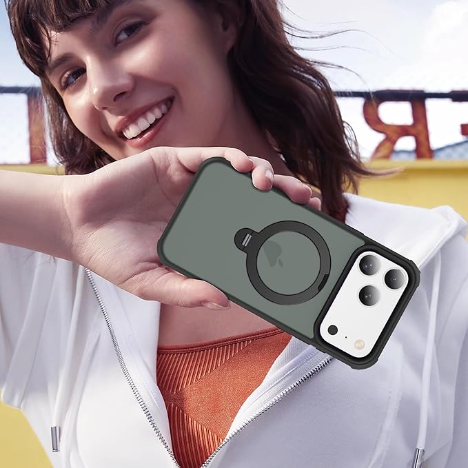 Compatible with iPhone 17 Pro Case with Invisible Magnetic 360°Spin Stand,Military-Grade Shockproof Protection [Compatible with Mag-Safe] Non-Slip Edge Translucent Case (6.3",Black)