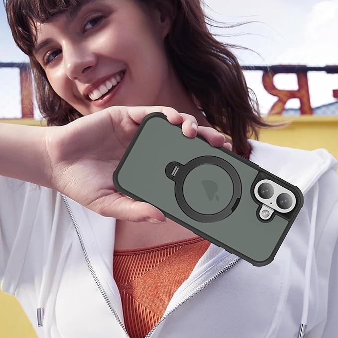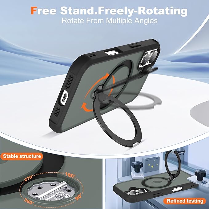 Compatible with iPhone 17 Case with Invisible Magnetic 360°Spin Stand,Military-Grade Shockproof Protection [Compatible with Mag-Safe] Non-Slip Edge Translucent Case (6.3",Black)