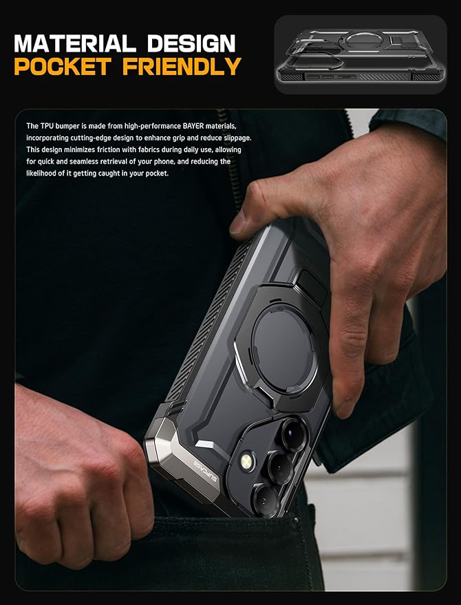 - A lightweight yet durable aluminum alloy stand elevates the portability of the phone case to new heights, ensuring stability in both portrait and landscape modes.