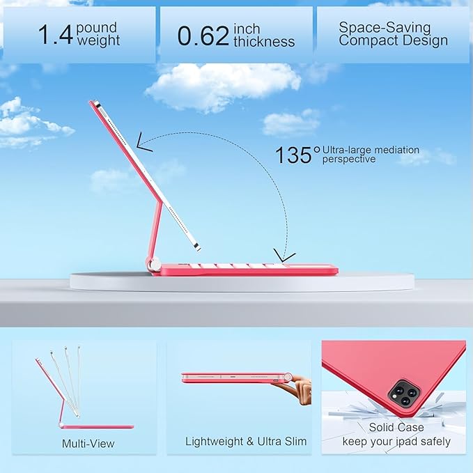 - Multi-touch trackpad Keyboard for iPad Air 13/Pro 12.9:One of the standout features of this case is integrated multi-touch trackpad. With a variety of trackpad gestures, you can turn your iPad into a highly efficient laptop, making tasks like swiping and scrolling a breeze. Enhance your productivity with keyboard shortcuts, designed to provide swift access to iPadOS features for a seamless and efficient operation. This functionality opens up new ways to interact with your iPad, enhancing productivity and user experience.